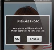 On the top page go to "My gallery" > "My photos" and tap "Unshare photo" After that confirm by tapping the "OK" button.